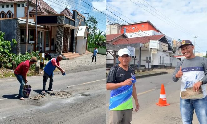 Tanggamus, Tentanglampung.com – Kepala Pekon (Kakon) Kutadalom, Kecamatan Gisting, Kabupaten Tanggamus, Tri Eka Saputra, mengambil inisiatif dengan melakukan penambalan lubang di Jalan Lintas Barat (Jalinbar) yang menghubungkan Pekon Kutadalom dengan ibu kota kabupaten dan daerah sekitarnya, Rabu (12/3/2025).