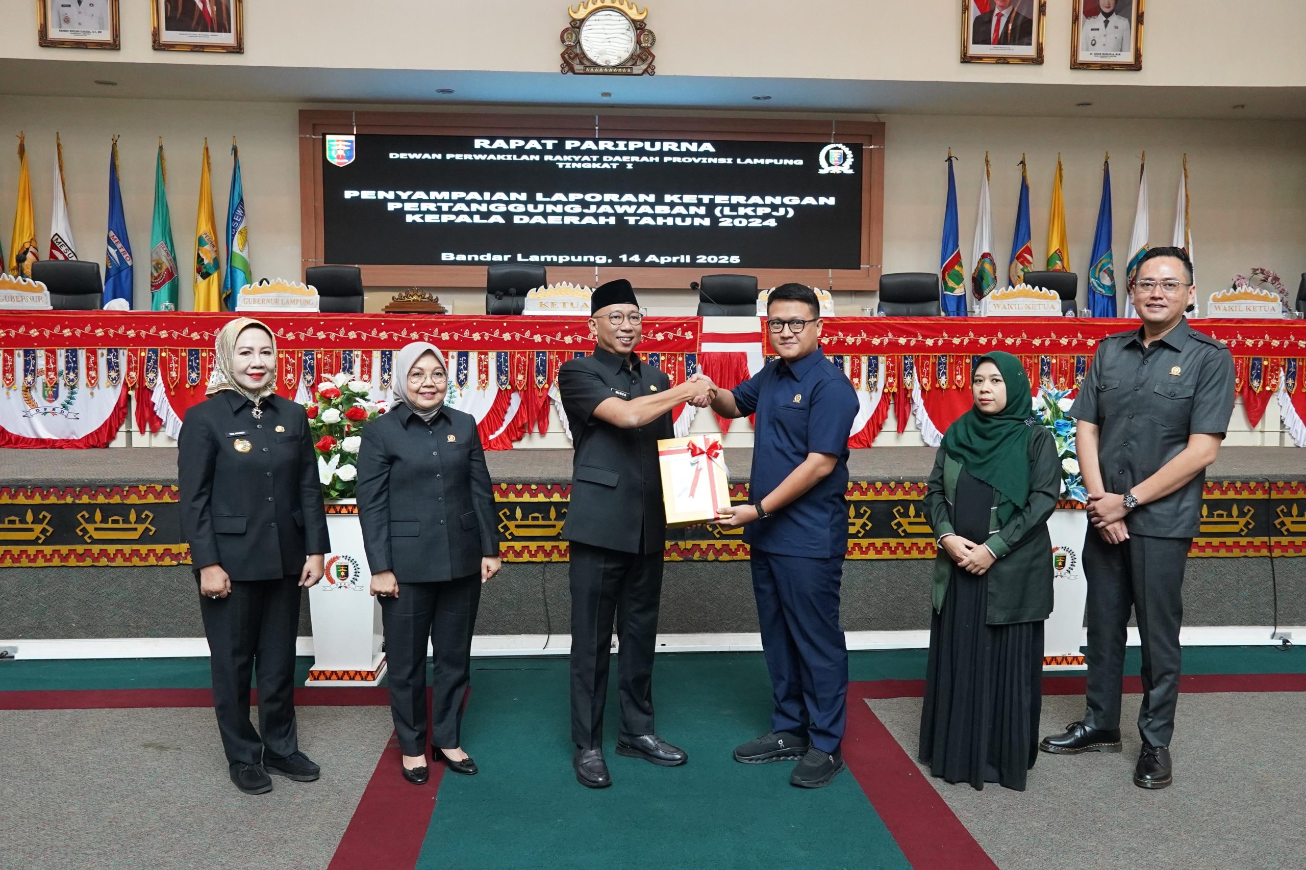 Bandar Lampung, Tentanglampung.com – Gubernur Lampung, Rahmat Mirzani Djausal, menyampaikan Laporan Keterangan Pertanggungjawaban (LKPJ) Kepala Daerah Tahun Anggaran 2024 dalam Rapat Paripurna DPRD Provinsi Lampung yang digelar di Ruang Sidang Paripurna pada Senin (14/4/2025).