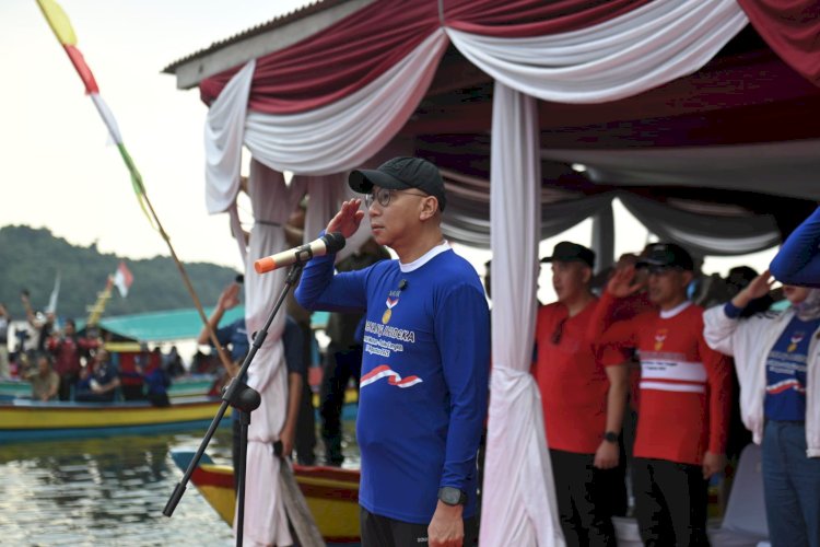 LAMPUNG – Gubernur Rahmat Mirzani Djausal mencatat sejarah pada peringatan HUT ke-80 Kemerdekaan Republik Indonesia. Dengan cara unik, ia menjadi Inspektur Upacara di atas permukaan laut, tepatnya di Pantai Mutun, Kabupaten Pesawaran, Sabtu (16/8/2025)