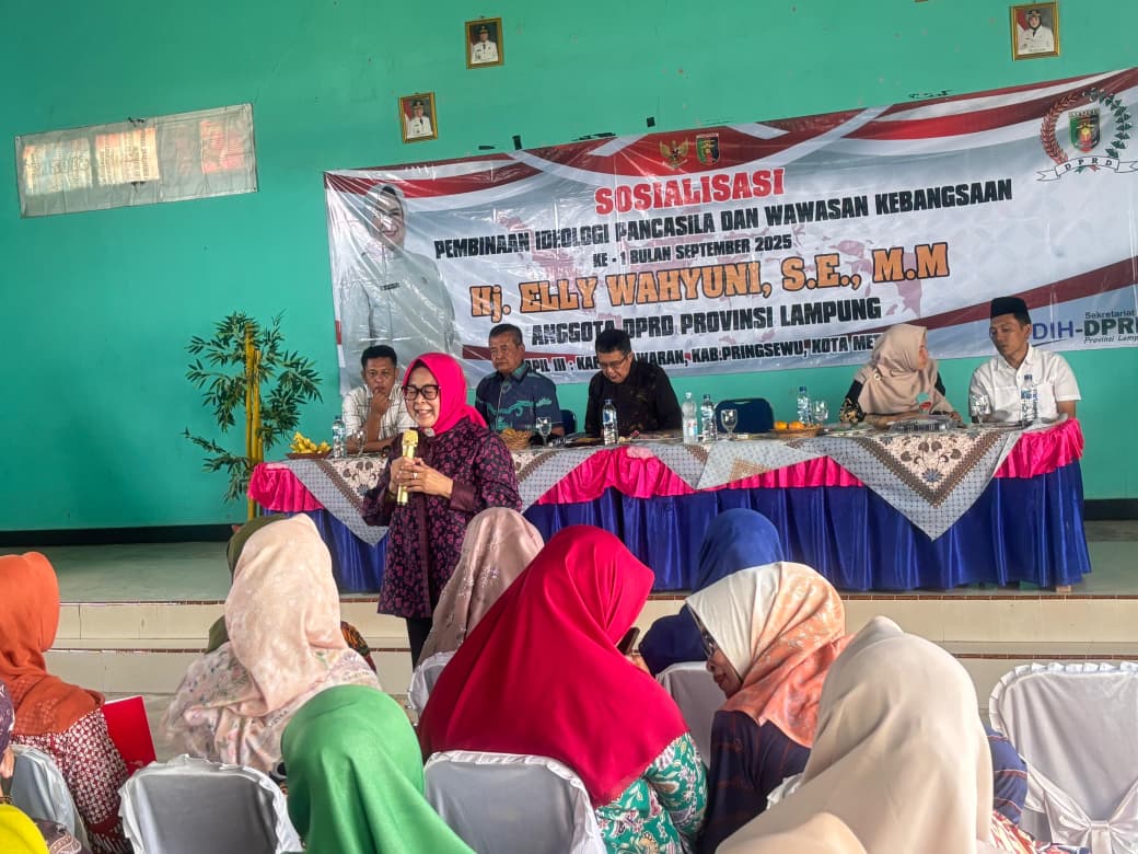 LEGISLATIF – Kemajuan teknologi dan arus digitalisasi yang begitu pesat dinilai mulai mendegradasi nilai-nilai luhur Pancasila di tengah masyarakat, terutama generasi muda. Hal ini disampaikan oleh Sekertaris Komisi V DPRD Provinsi Lampung, Elly Wahyuni, dalam kegiatan Sosialisasi Pembinaan Ideologi Pancasila dan Wawasan Kebangsaan yang digelar di Desa Margodadi, Kecamatan Ambarawa, Kabupaten Pringsewu, Minggu (7/9/2025).