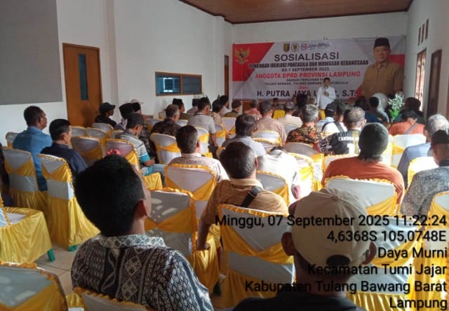 Dalam sosialisasi Pembinaan Ideologi Pancasila dan Wawasan Kebangsaan (PIP-WK) di Gedung La Madre, Kecamatan Tumijajar, Putra Jaya menegaskan narkoba jauh lebih berbahaya daripada teroris karena merusak moral dan masa depan generasi bangsa. Ia juga menyoroti dampak judi online dan pinjol ilegal yang memperparah kondisi sosial-ekonomi masyarakat.
