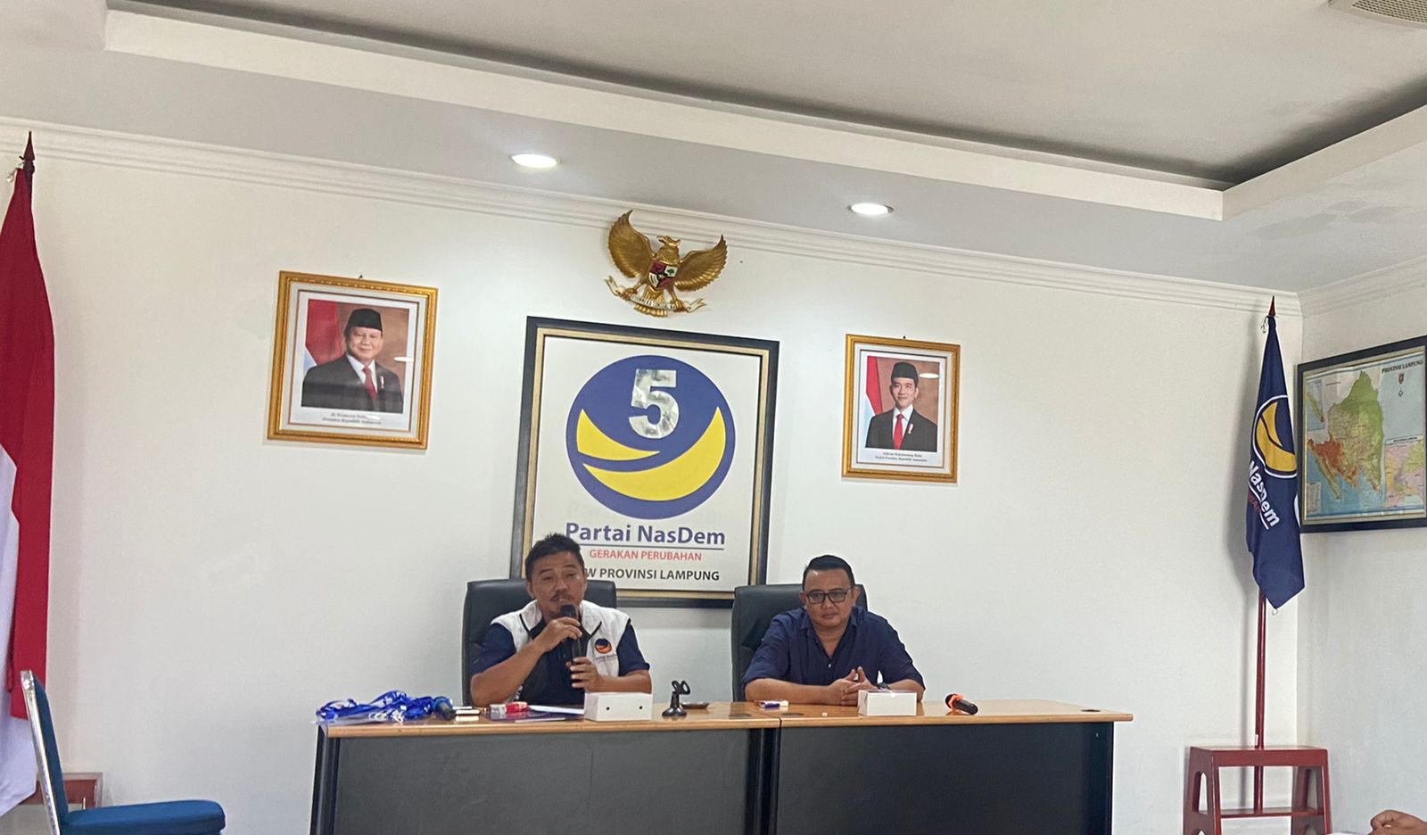 “Selanjutnya, pada saat acara pelantikan tidak ada sesuatu lain yang berhubungan dengan dukung mendukung. Hanya akan ada pelantikan struktur DPW NasDem Lampung. Kemudian ada pidato politik Ketum Surya Paloh,” jelasnya.