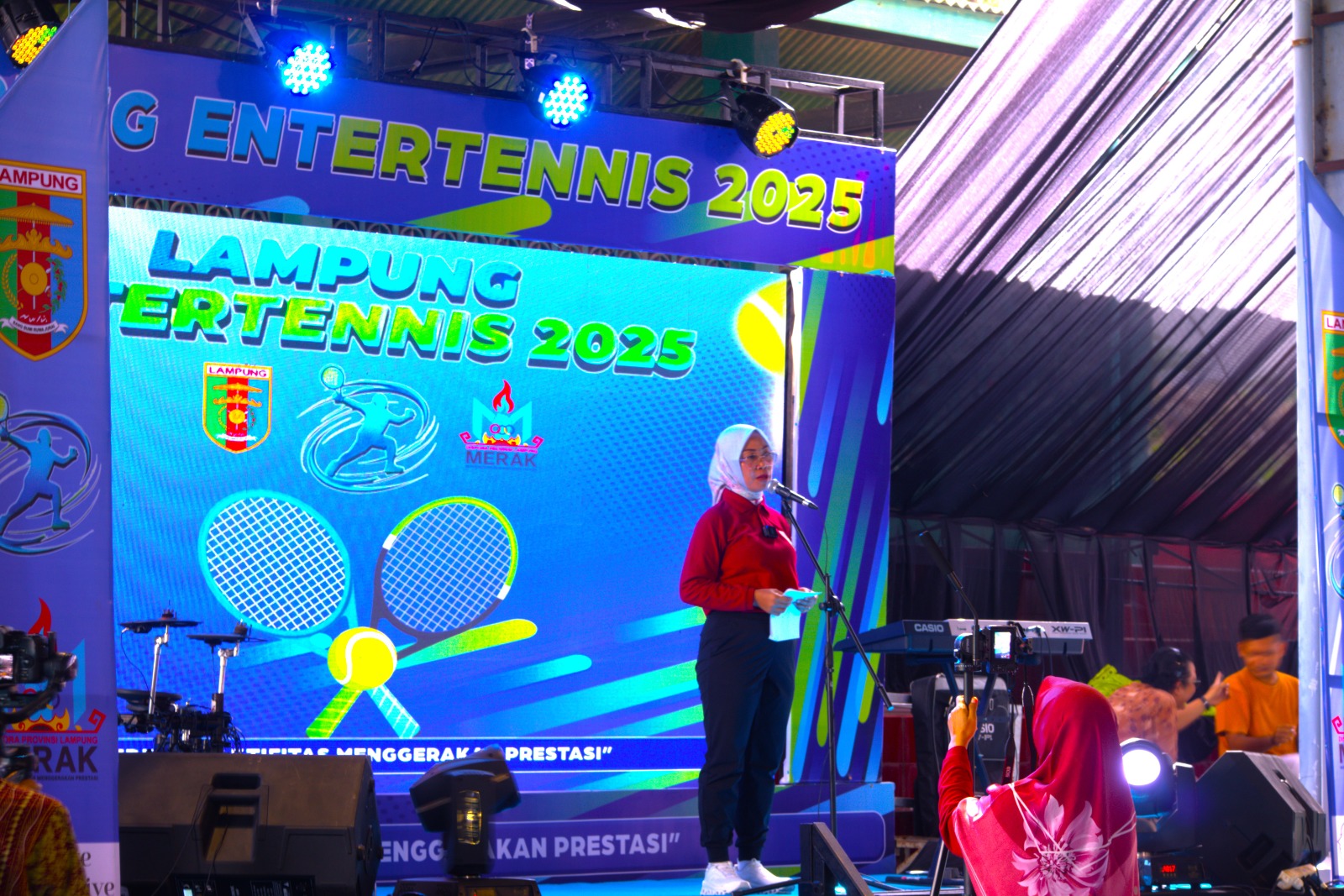Dalam sambutannya, Syaifulloh menegaskan bahwa penyelenggaraan Lampung Entertennis 2025 merupakan bentuk komitmen kuat Pemerintah Provinsi Lampung dalam mendorong pengembangan olahraga, khususnya tenis lapangan.