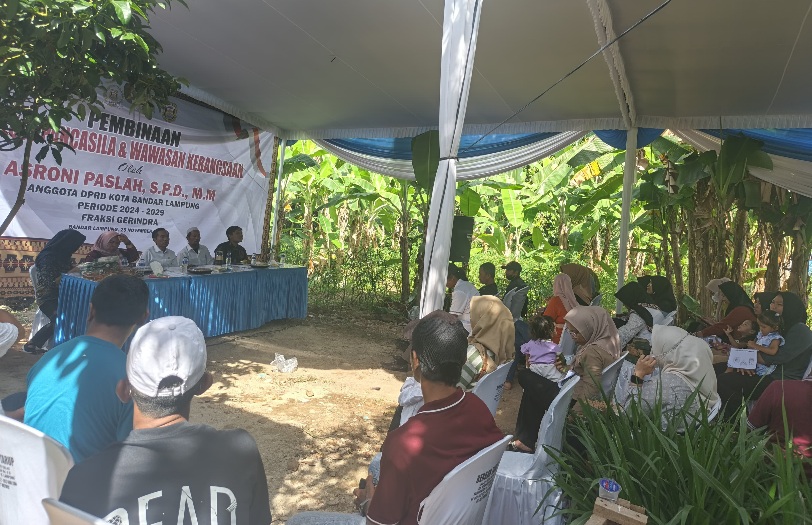 LEGISLATIF – Ketua Komisi IV DPRD Kota Bandar Lampung, Asroni Paslah menggelar sosialisasi Pembinaan Ideologi Pancasila dan Wawasan Kebangsaan (PIP-WK) yang digelar di kelurahan Kelurahan Kedaung, Kecamatan Kemiling.