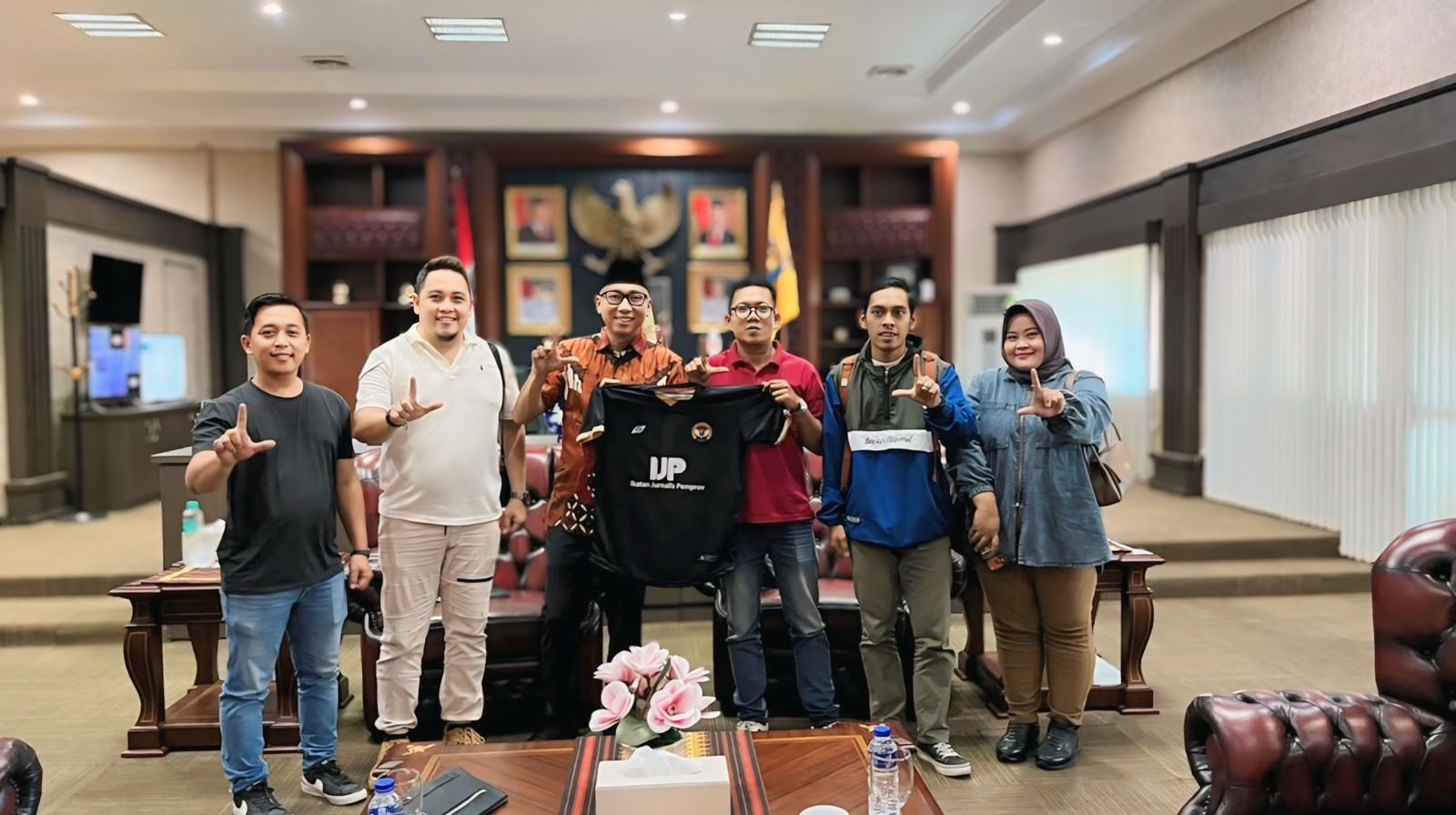 Gubernur Lampung, Mirza (tengah) didampingi pengurus IJP Lampung, kiri ke kanan (Agung, Davit, Rio, Mufid dan Septi)/Ist.