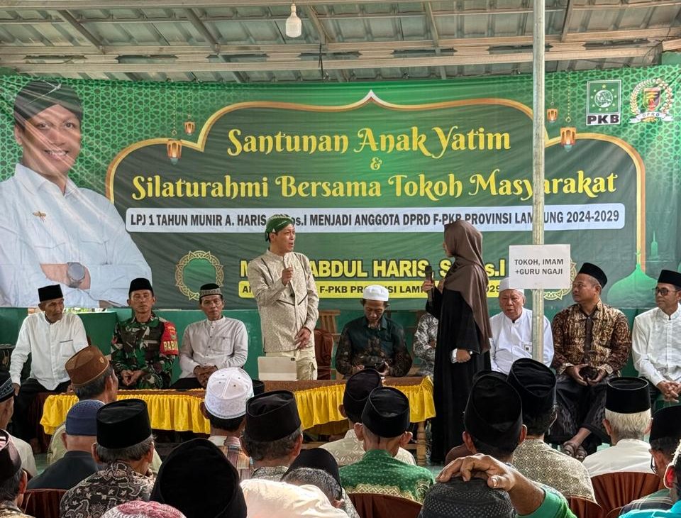LAMPUNG TENGAH – Anggota Komisi III DPRD Provinsi Lampung dari Fraksi Partai Kebangkitan Bangsa (PKB), Munir Abdul Haris, S.Sos.I, menggelar kegiatan santunan anak yatim dan silaturahmi bersama guru ngaji serta tokoh masyarakat.